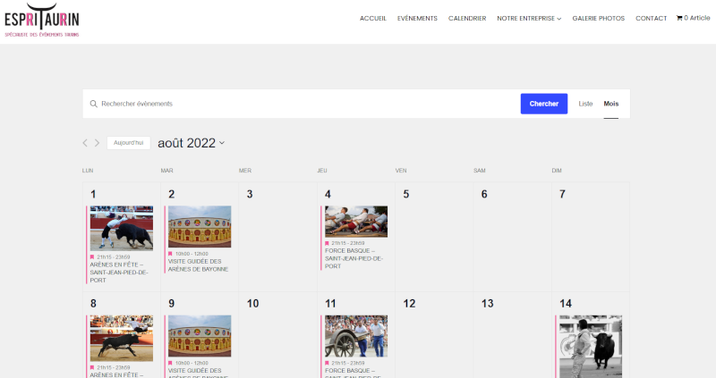 Desarrollo completo de pagina profesional y e-commerce para la empresa Francesa de organización de eventos taurinos "ESPRIT TAURIN".
